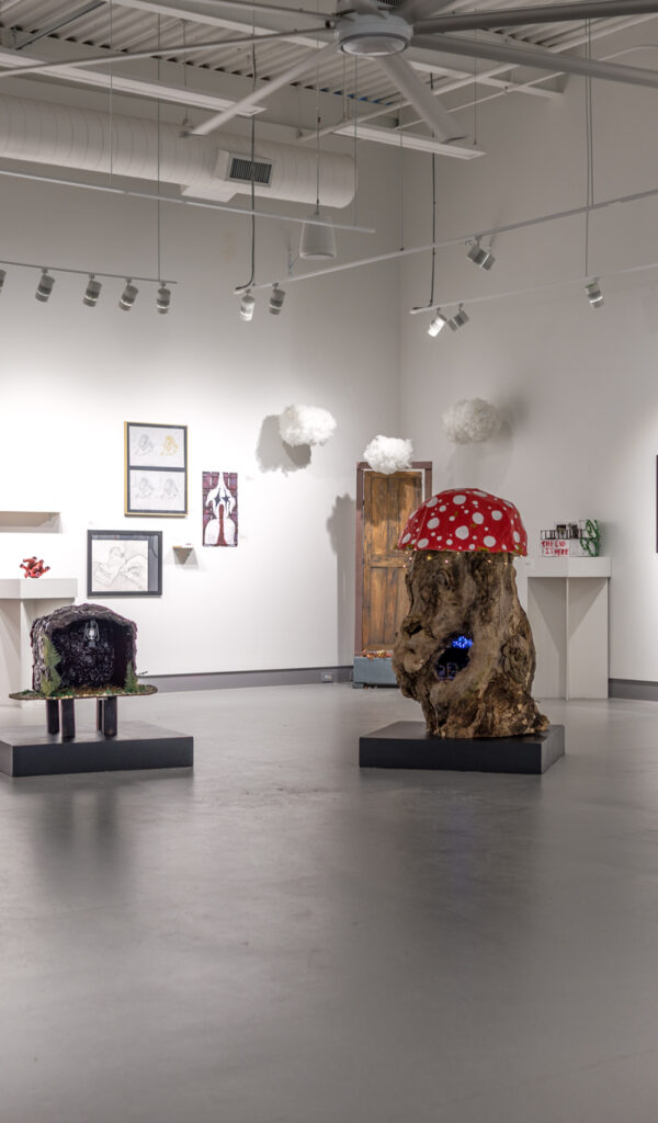 “In this exhibit, you will find many visions of how we perceive the world,” their statement adds. “The art you will see showcases things that we obsess over, our passions, and interests, ranging from fantastical, vivid creatures to mechanical marvels, and anything that holds special meaning.”