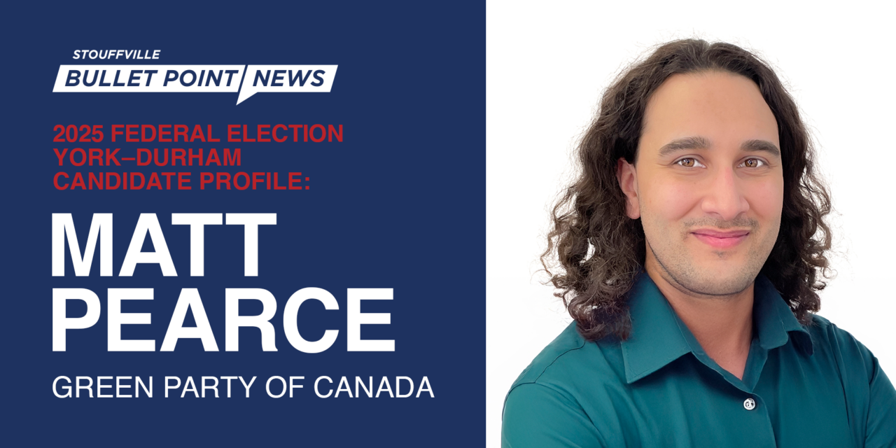 - York–Durham Green Party candidate Matt Pearce is running his first campaign for public office, bringing a lengthy background in small business and deep family ties to the region.