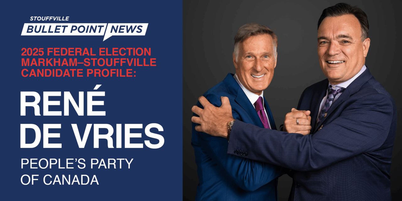 - PPC candidate René de Vries, a longtime Stouffville resident and environmental engineering sector executive, is running on a platform focused on fiscal discipline and restricted immigration.